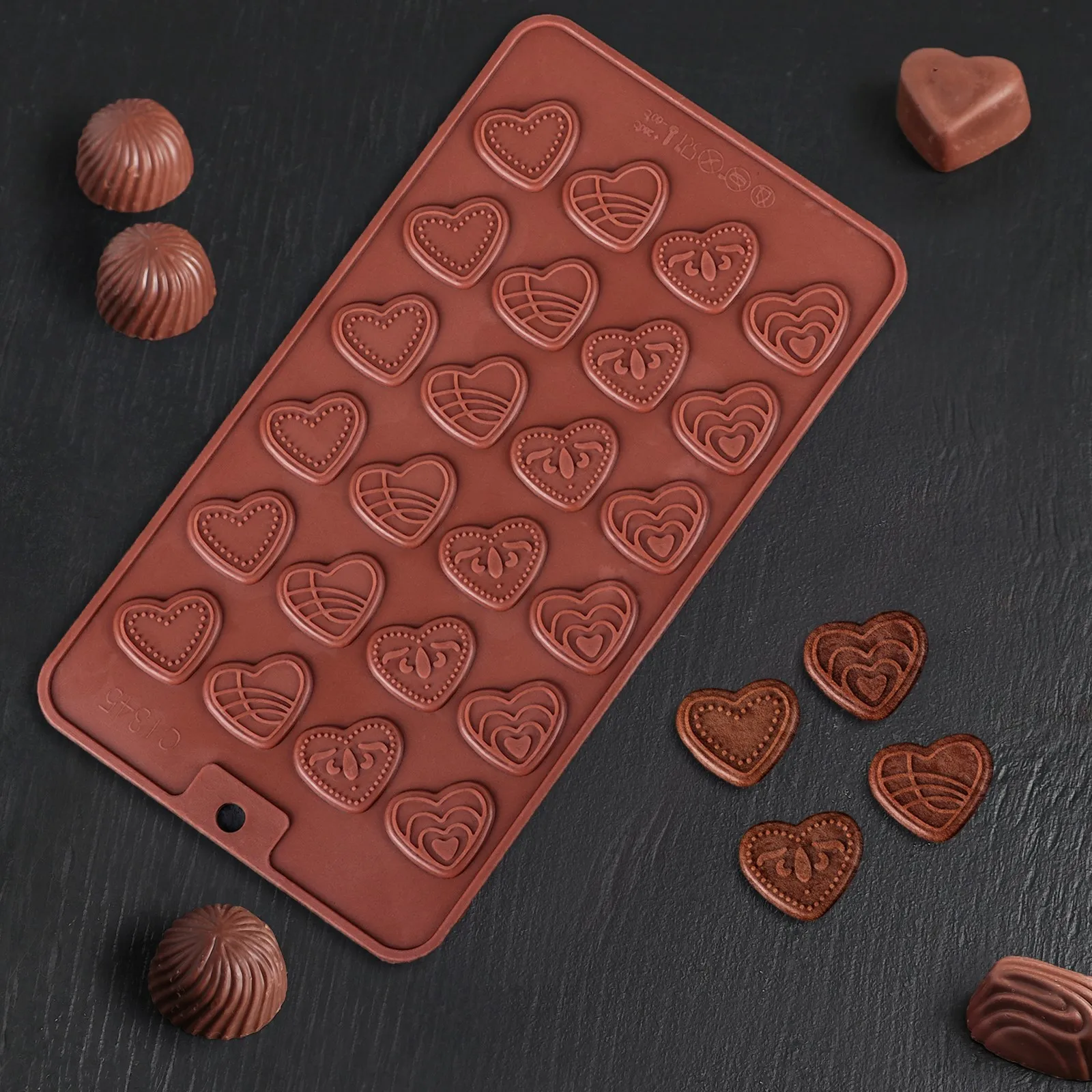 Форма силиконовая "Сердечки" 24 ячейки (коричневая)