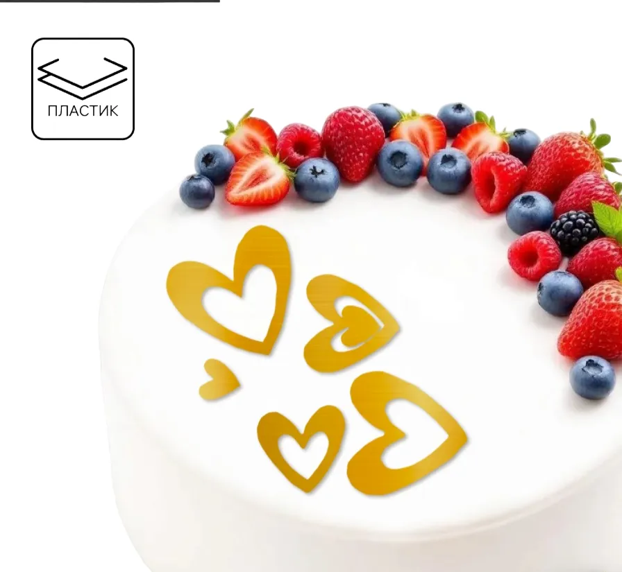 Топпер - Бенто "Сердце", 3 в 1, 6 шт Золото, акрил